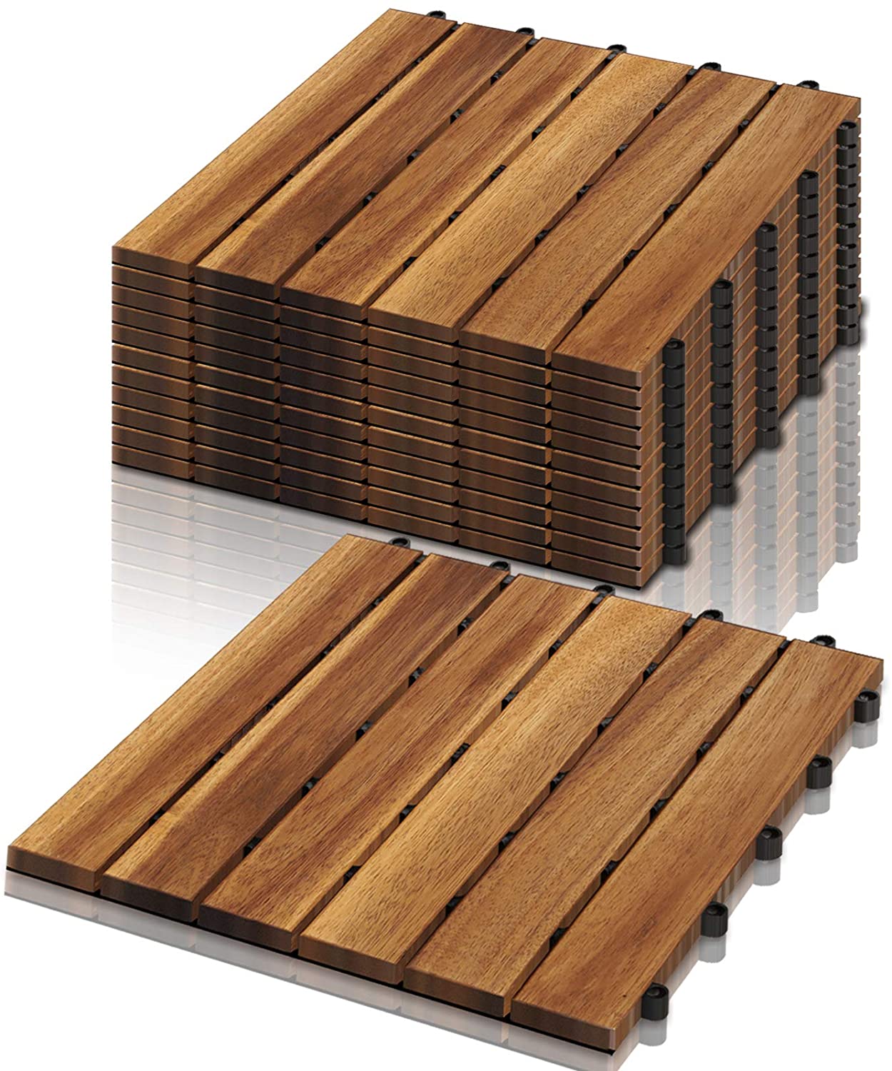 El set de baldosas superventas del momento es este set de 33 piezas de Casaria de madera. Las baldosas, de 30x30cms, cubren un espacio total de 3 metros cuadrados, aunque puedes comprar el set para cubrir hasta 6 metros.
