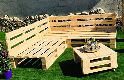 Los sofás de palets son una de las opciones favoritas para quienes quieren decorar su terraza con un estilo chill out. Aquí te presentamos diferentes modelos de sofás de palets, un conjunto de rinconera con mesa. Todos los palets son de madera de alta calidad y vienen lijados y cepillados, listos para colocar y utilizar en tu terraza o jardín. ¡No olvides que necesitarás cojines para poder tumbarte en ellos!